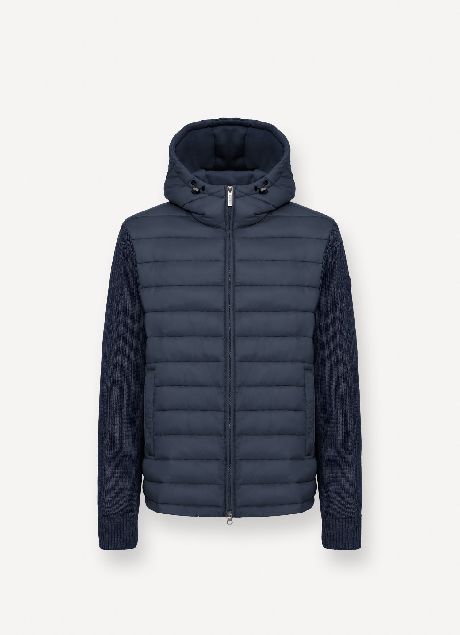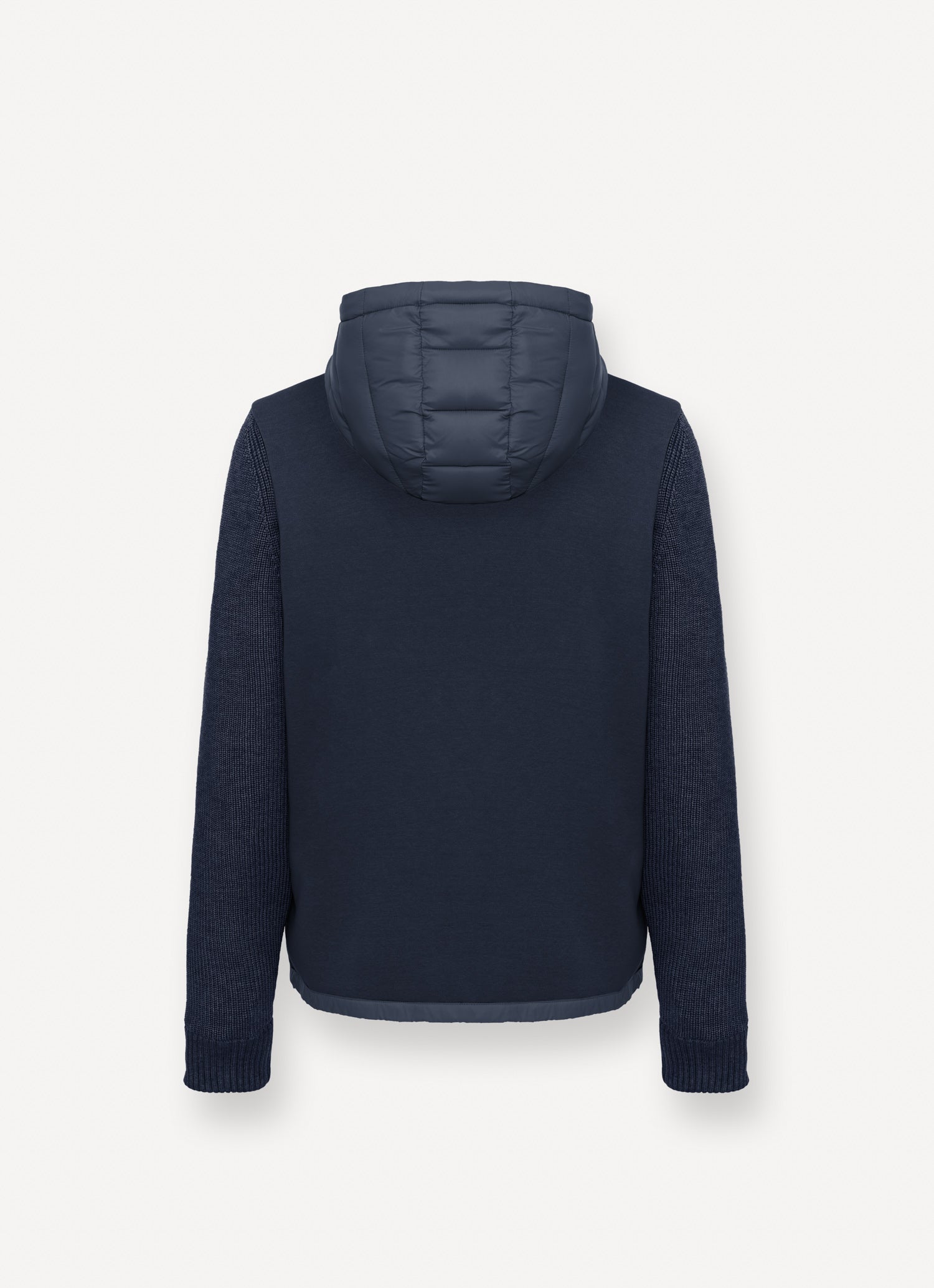 Un perfetto equilibrio, questa giacca unisce un'imbottitura trapuntata frontale a inserti in maglia e felpa. Il cappuccio regolabile, la coulisse sul fondo e le tasche laterali con zip aggiungono un tocco tecnico, mentre le maniche a costine e il retro in felpa ne accentuano l’anima sportiva. Ideale per il quotidiano durante la stagione autunnale.