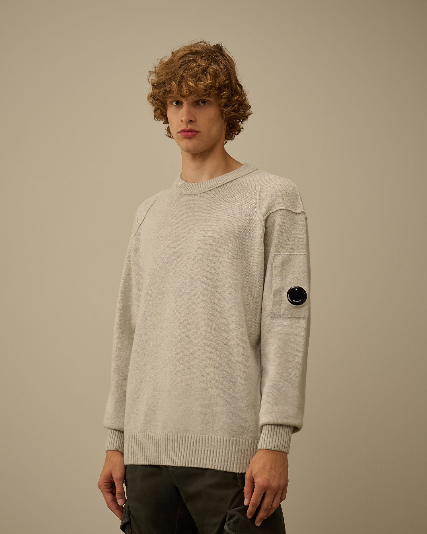 Maglione girocollo realizzato in Lambswool GRS. La certificazione Global Recycled Standard garantisce il rispetto di criteri ambientali e sociali in tutte le fasi della filiera. Il capo presenta l’iconica Lente di C.P. Company, cuciture a contrasto, polsini e orlo a costine. Finezza 7. Regular fit.