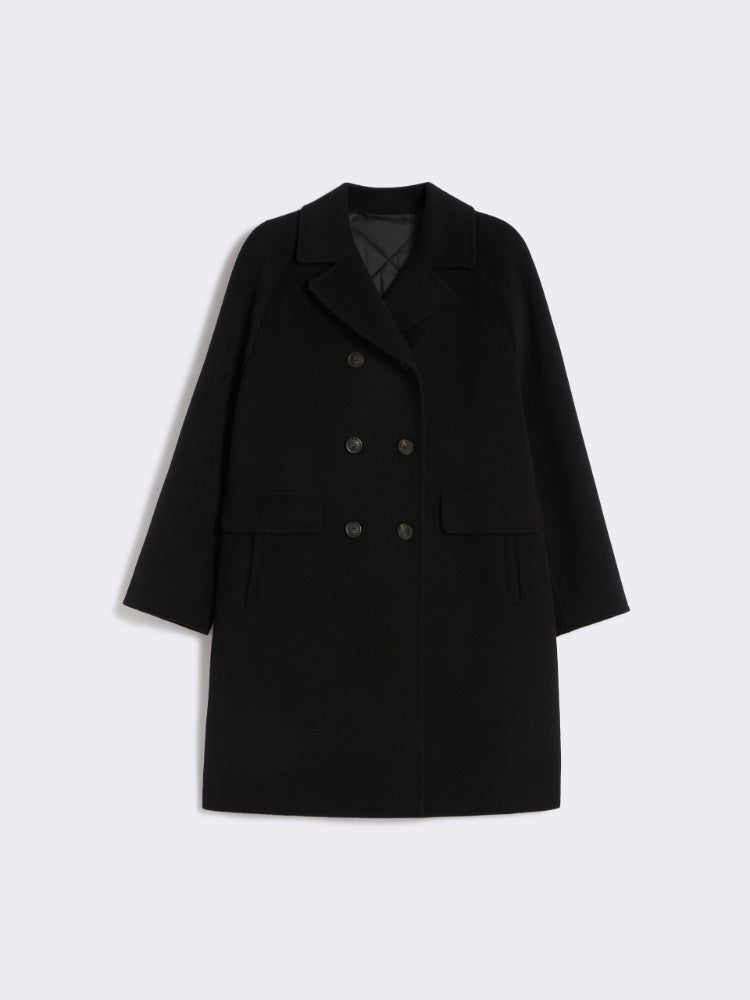 Cappotto midi doppiopetto con retro in tela antigoccia, imbottito in Luxepad Ultra Fine Insulating Technology Camel-Silk Blend Edition e trapuntato a rombi.