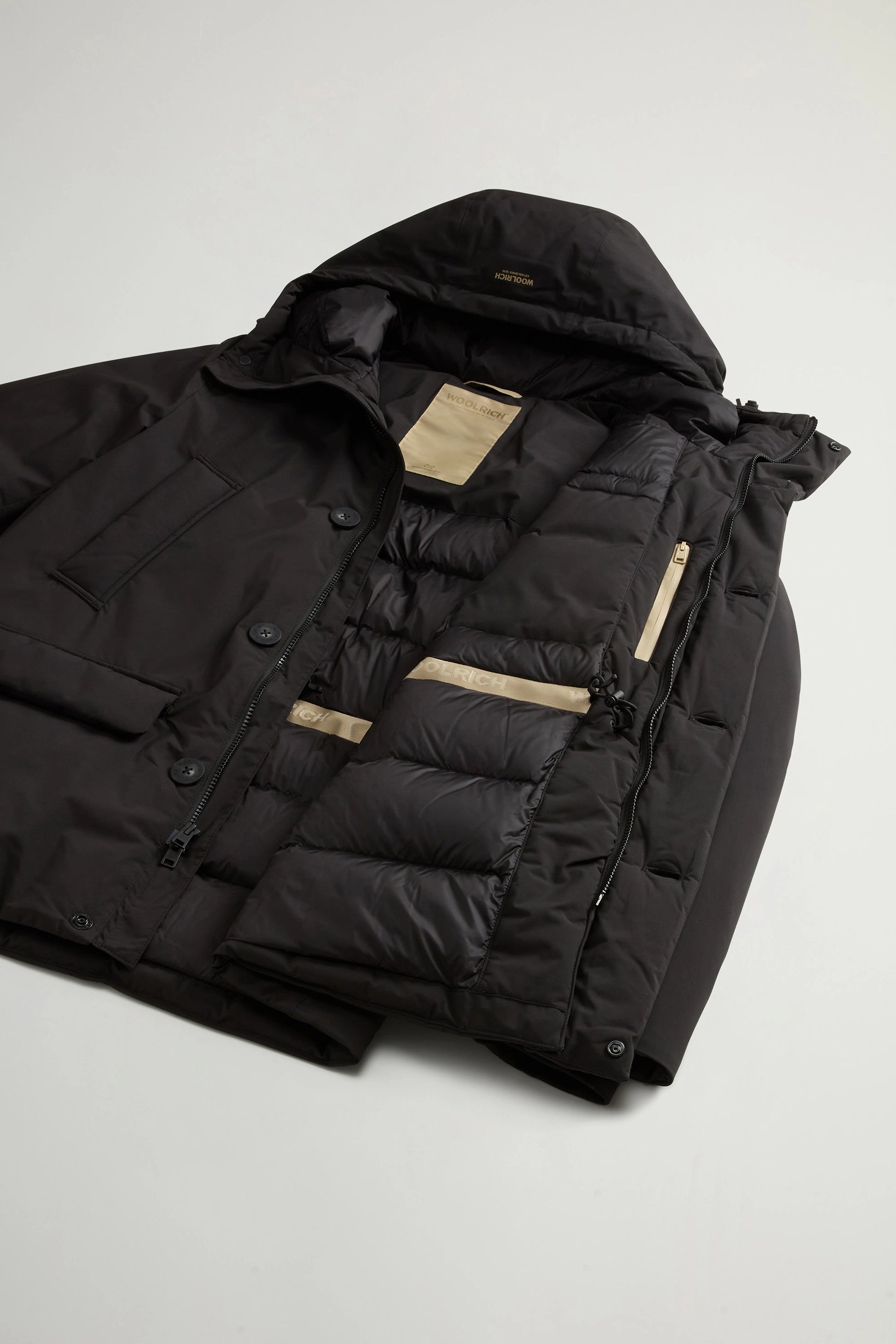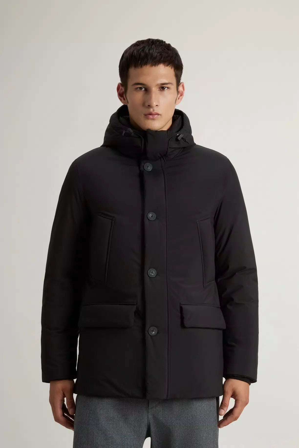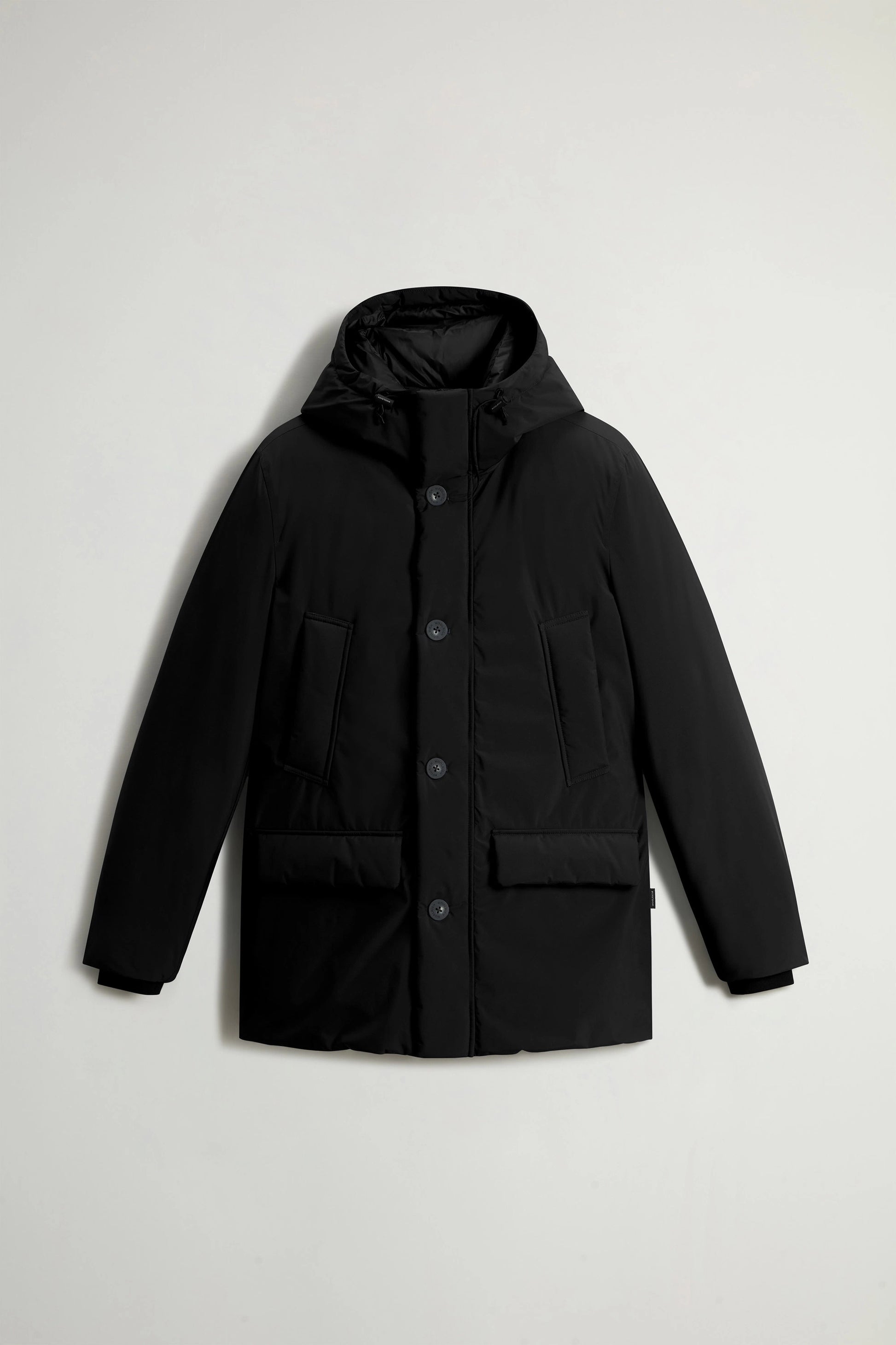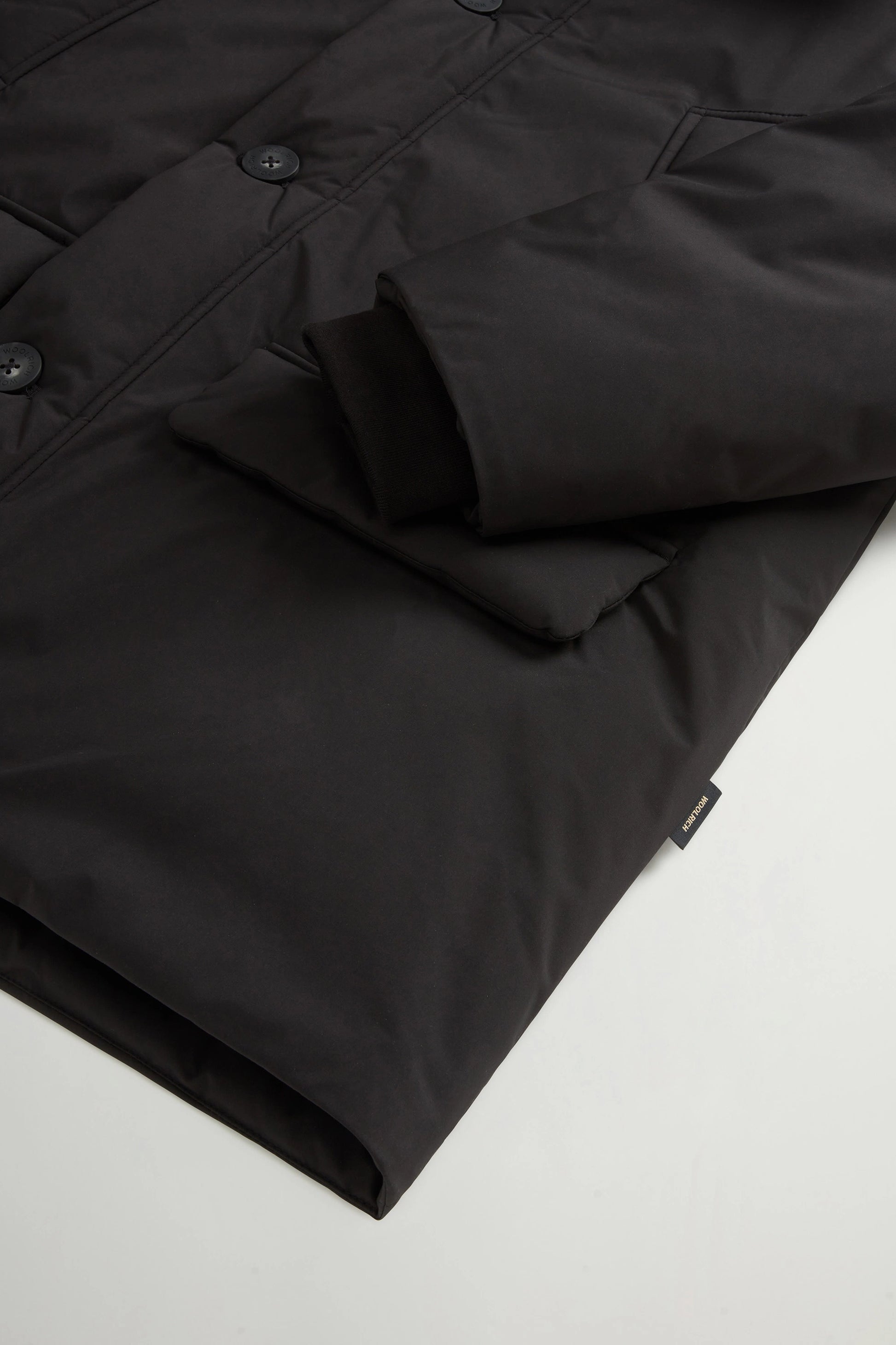Un'icona rivisitata per la Cloud Series, la nostra capsule di capispalla caldi ma leggeri come una nuvola. Pensato per offrire protezione e comfort nei mesi più freddi, questo parka imbottito in piuma d'anatra unisce performance tecniche e cura del dettaglio. Realizzato in tessuto resistente all'acqua, antivento e traspirante, è stato sottoposto a un trattamento di idrorepellenza sostenibile WR C0 per una barriera aggiuntiva. Il modello presenta cappuccio fisso con regolazione tramite fermacorda, chiusura frontale con zip bidirezionale coperta da patta e bottoni, oltre a dettagli nascosti come i bottoni automatici sul collo alto e sul fondo. La coulisse interna in nastro logato garantisce un'ottima vestibilità. Non mancano le iconiche tasche frontali – due scaldamani sul petto e due inferiori con patta, zip nascosta e bottoni automatici – e la tasca interna con zip. I polsini interni a costine e il logo stampato sul cappuccio completano il design.