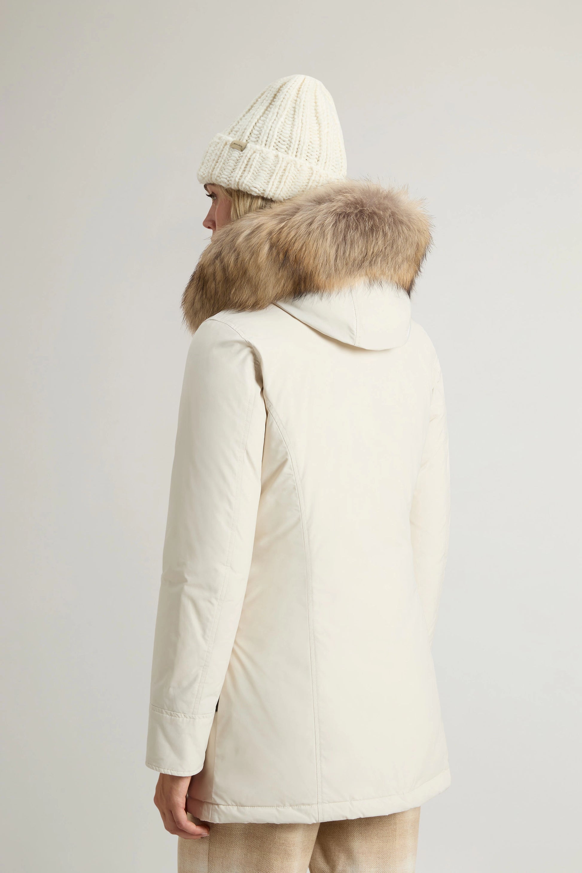Il Luxury Arctic Parka fonde la ricca tradizione Woolrich con un tocco di femminilità, rivisitando il nostro storico modello originariamente realizzato per proteggere i lavoratori degli oleodotti dell'Alaska dai climi più rigidi. Questa interpretazione è realizzata nel nostro caratteristico tessuto Urban Touch idrorepellente, resistente al vento ed è imbottita in piuma d'anatra e completata da un ampio cappuccio. L'inserto staccabile in pelliccia di procione valorizza il design con un tocco pregiato, mentre le ampie tasche e i polsini a costine assicurano ulteriore protezione nelle giornate particolarmente fredde e ventose.