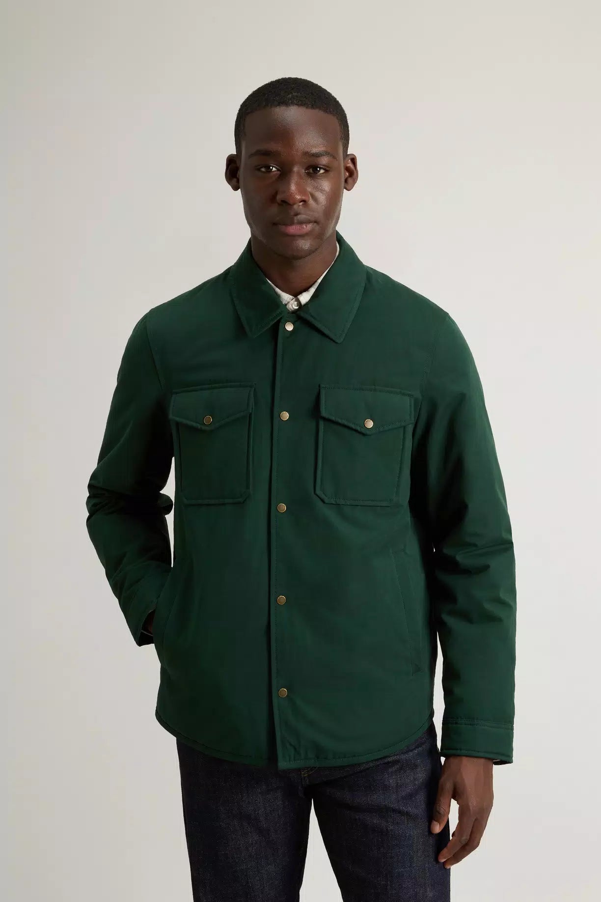 Una rilettura contemporanea della classica overshirt, pensata per unire funzionalità e stile in ogni dettaglio. Realizzata in Mountain Cloth, un tessuto compatto e resistente al vento, questa giacca a camicia è dotata di un’imbottitura in piuma d’anatra, che assicura un calore avvolgente senza appesantire. L’interno è rifinito con trapuntatura orizzontale e fodera a contrasto. Il colletto può essere chiuso con una linguetta logata rimovibile, mentre la chiusura frontale combina una zip nascosta e bottoni a pressione. A completare il modello una serie di pratiche tasche, due con patta e bottone a pressione sul petto, due a filetto con bottone a pressione nascosto e una interna con zip verticale, polsini regolabili ed etichetta laterale.